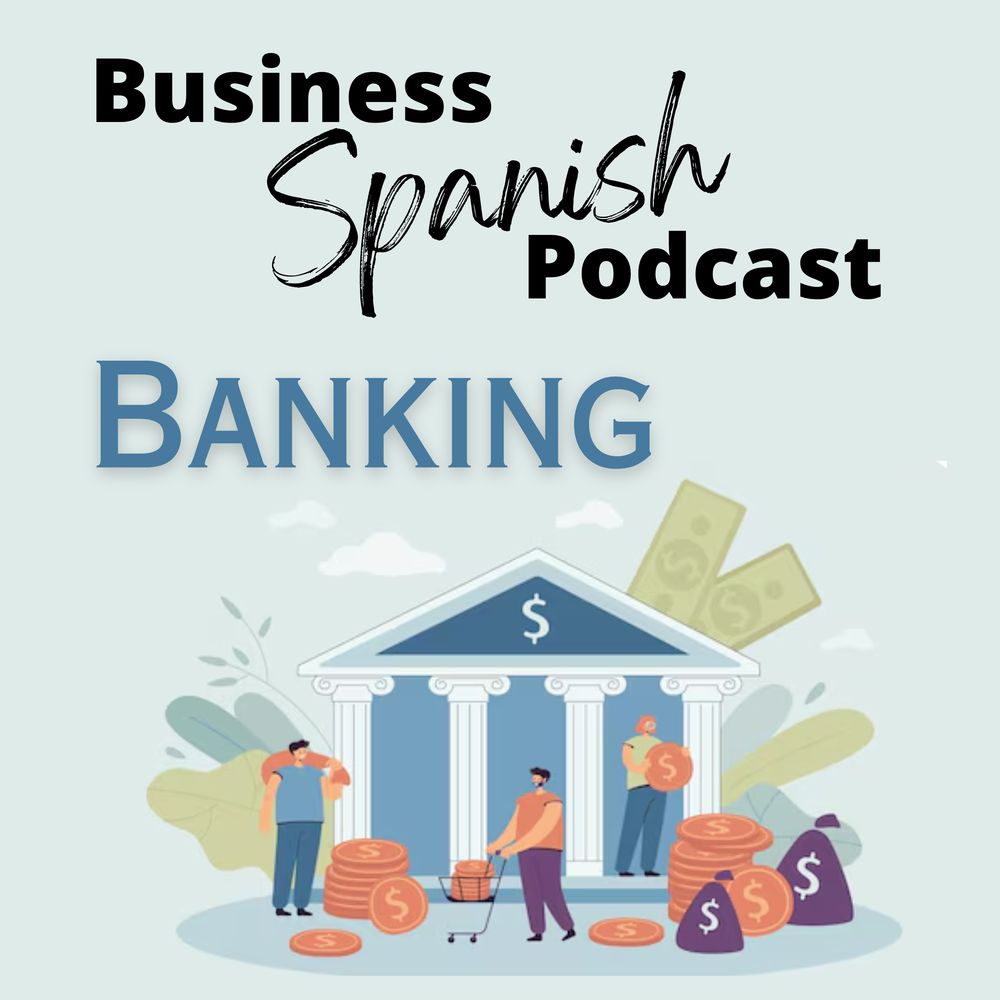 This document contains worksheets with vocabulary exercises and the complete transcript for Business Spanish Podcast Episode 29: Banking.