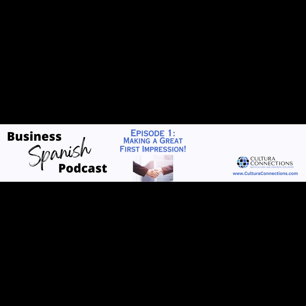 This document contains worksheets with vocabulary exercises and the complete transcript for Business Spanish Podcast Episode 29: Making a Great First Impression!